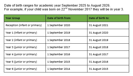 Children are admitted to the school's Reception classes in the September after they turn 4 years old. We have 2 Reception classes, each with space for 30 children.