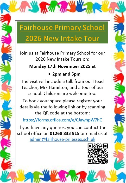 If you would like to apply for an in-year (mid-year) space for your child please complete the application form in the link below and return it via email at: admin@fairhouse-pri.essex.sch.uk or in person via the school office. If you are applying for more than one child, please complete a separate application form for each.